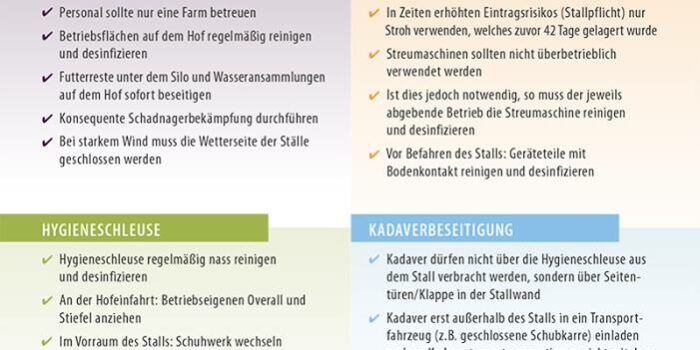 Der Zentralverband der Deutschen Geflügelwirtschaft e.V. hat eine Checkliste zum Schutz des Geflügelbestandes vor einem Ausbruch der Geflügelpest erstellt, welche hier als PDF heruntergeladen werden kann.