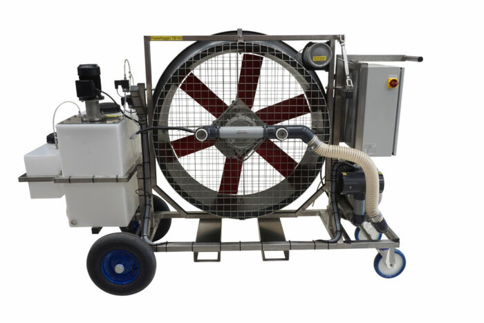 FreiMäster testet ‚Powerfogger 100‘. Das Gerät soll die Stalldesinfektion sehr flexibel gestalten und durch Vernebelung sehr gute Desinfektionsresultate liefern. Es können verschiedene zugelassene Desinfektionsmittel je nach Bedarf vernebelt werden. Die Desinfektion eines 2000 m² großen Stalls dauert ca. 1½ bis 2 Stunden.